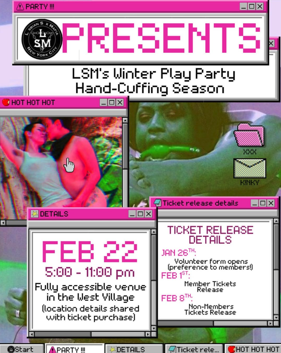 Hand-Cuffing Season will be happening in the West Village on Sunday, February 22 from 5-11 PM! Our new venue is a fully accessible and conveniently located space near the C/E and 1 train lines. The space will have spanking benches, St. Andrew's crosses, massage tables, hard points for rope play, and PLENTY of beds!
